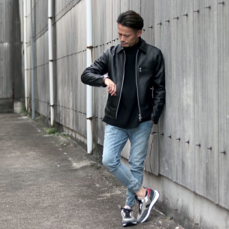 レザージャケットのスタンダードモデルとして幅広いコーディネートで着用頂けます。