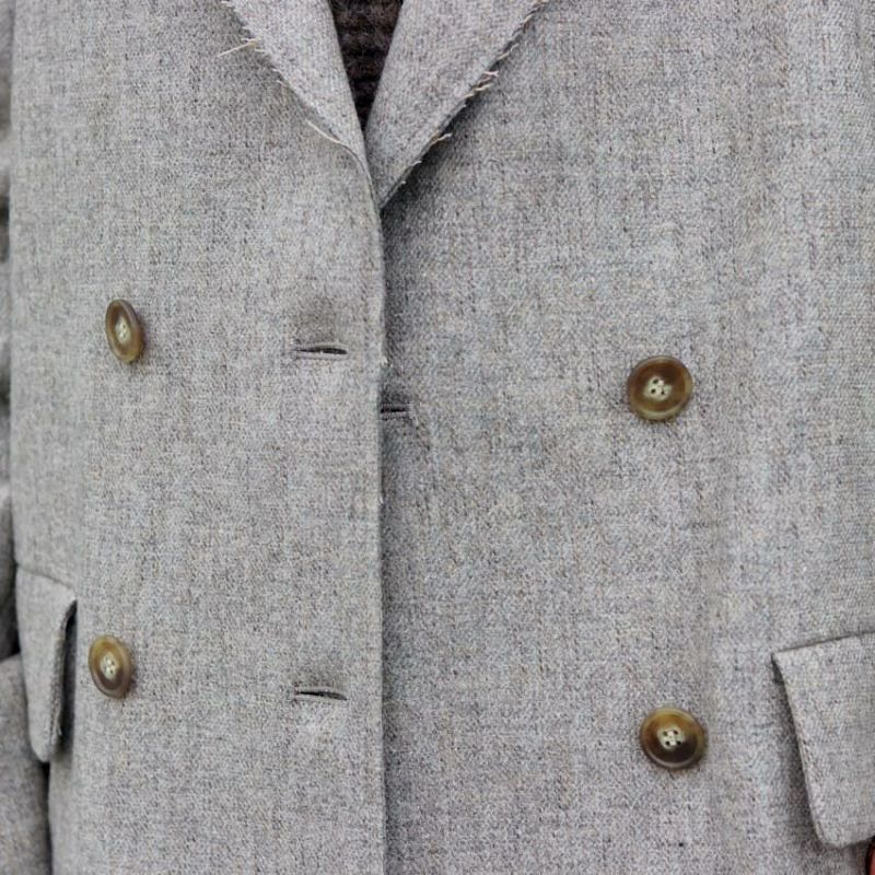 素材:毛54% ポリエステル41% ナイロン3% レーヨン1% ポリウレタン1% (裏地)ポリエステル68% 複合繊維(ポリエステル)32%