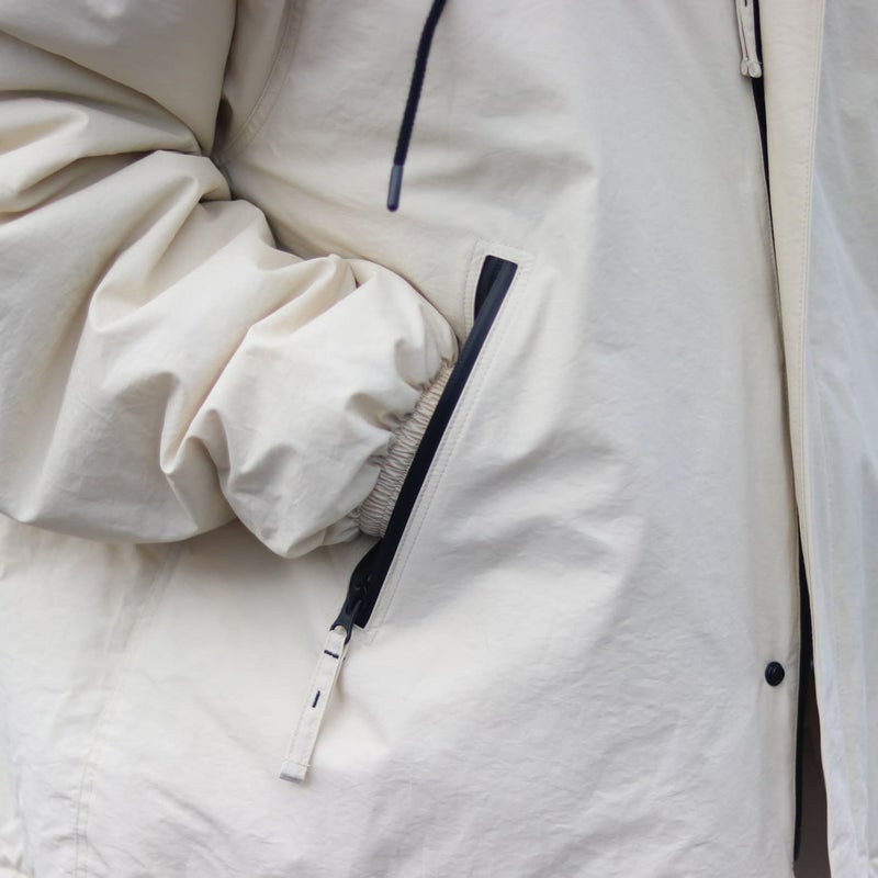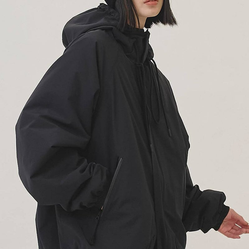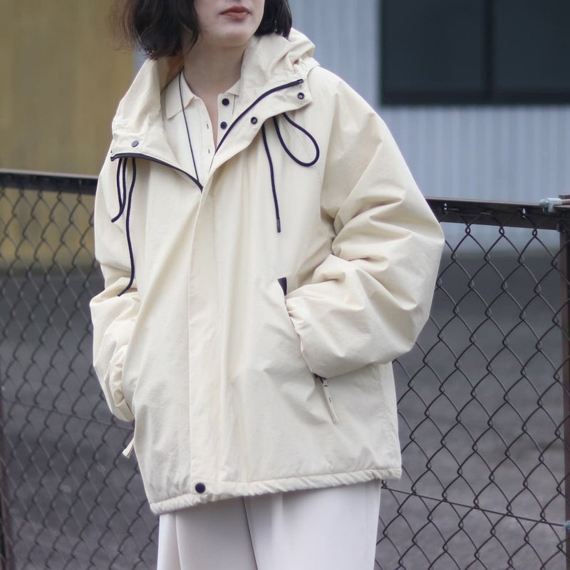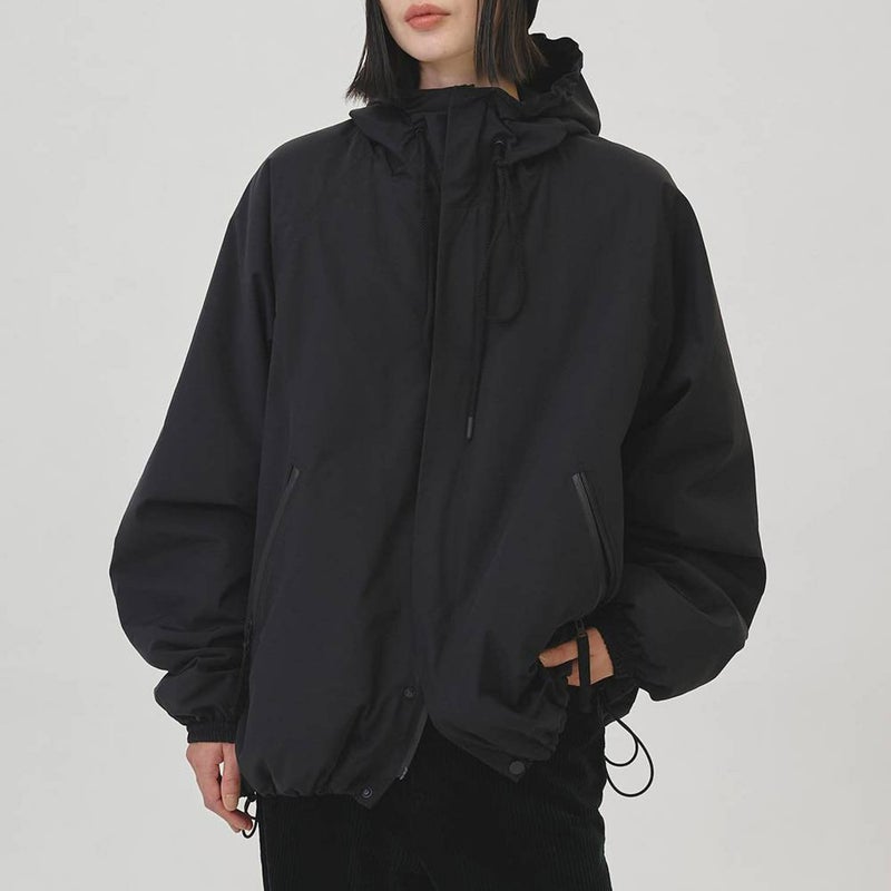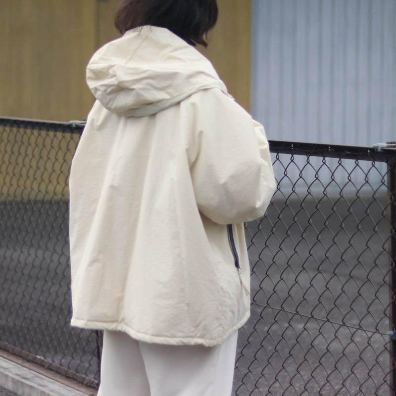 ほどよく張りがあり、マットな生地を使用したフーディージャケット。