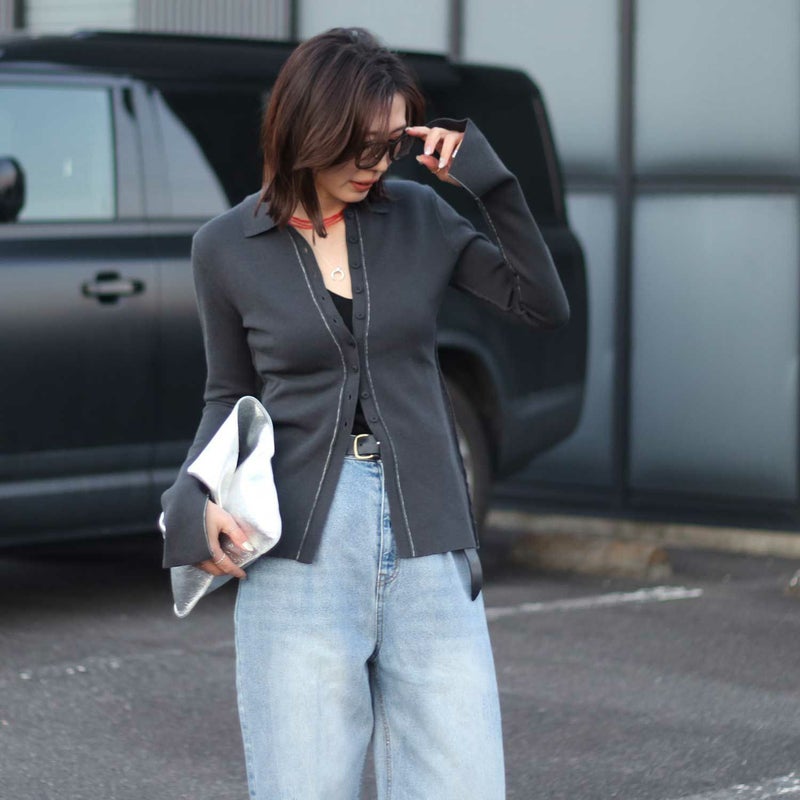 パンツにもスカートにも合わせやすく、さっと纏うだけでこなれ感のあるスタイリングが完成する、ワードローブに加えたい一着です。