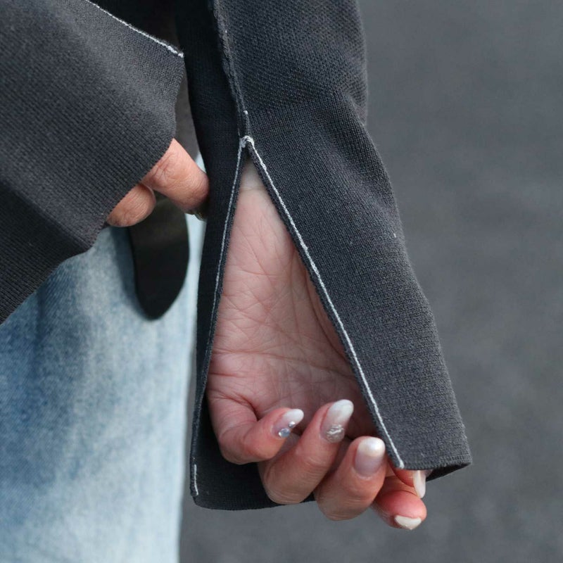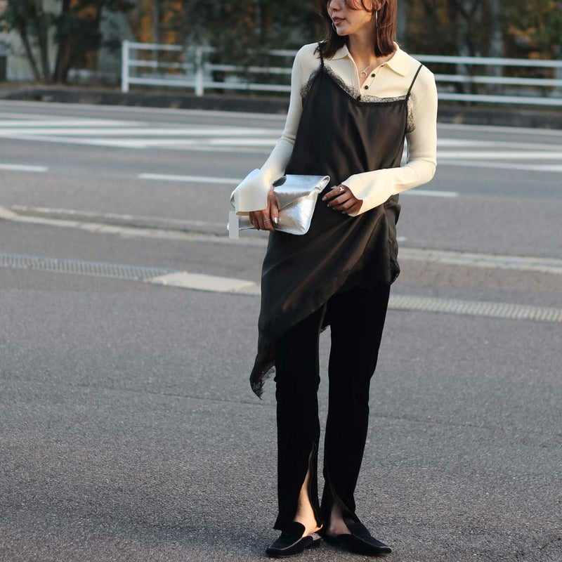 すっきりとした袖まわりと、スリットを施したフレアスリーブがフェミニンな表情を引き立てます。
