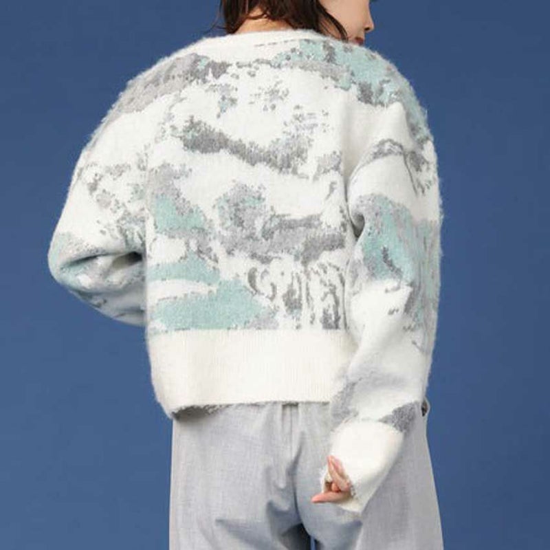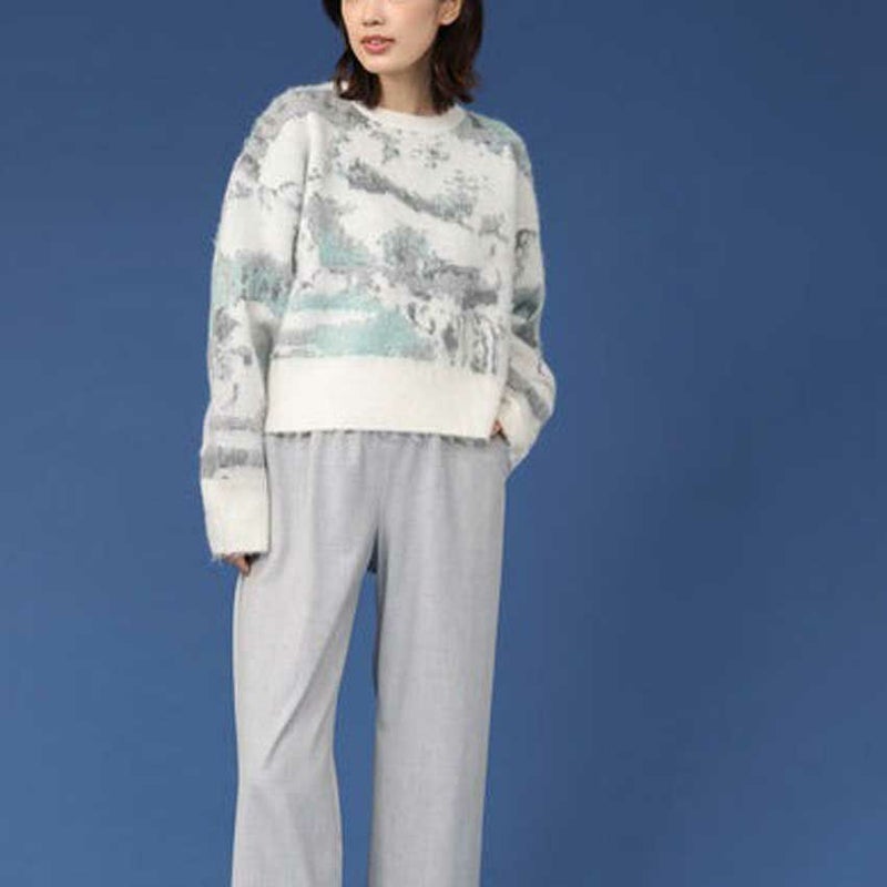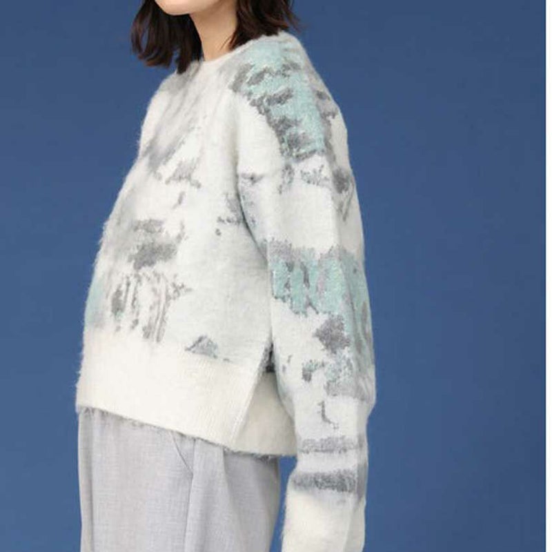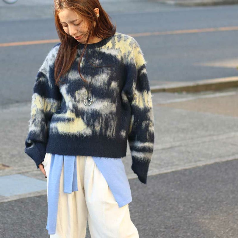 長めの毛足がふわっと揺れる、ニュアンス柄のシャギープルオーバーニット。