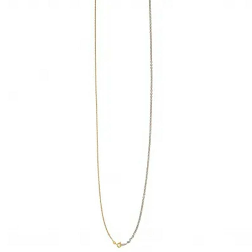 シルバーとゴールド、異なる輝きをミックスした上品なネックレス。