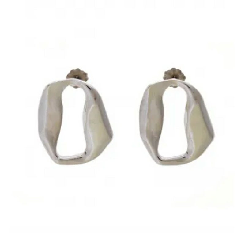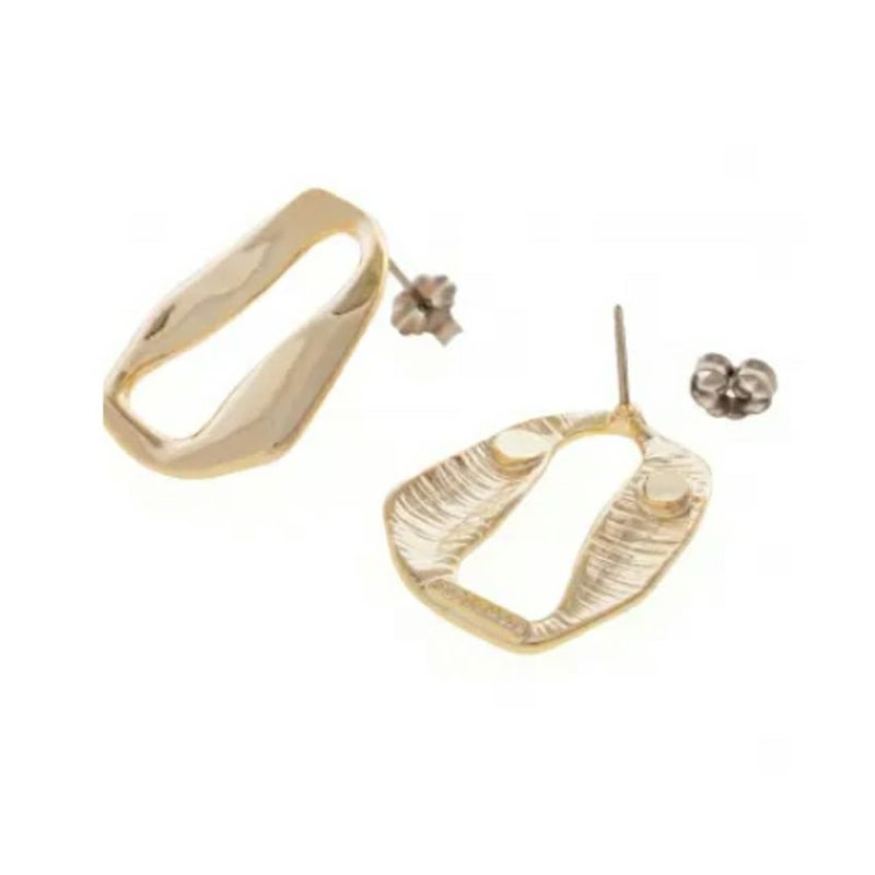 独特なフォルムが目を引く、歪な“0”型デザインのピアス。