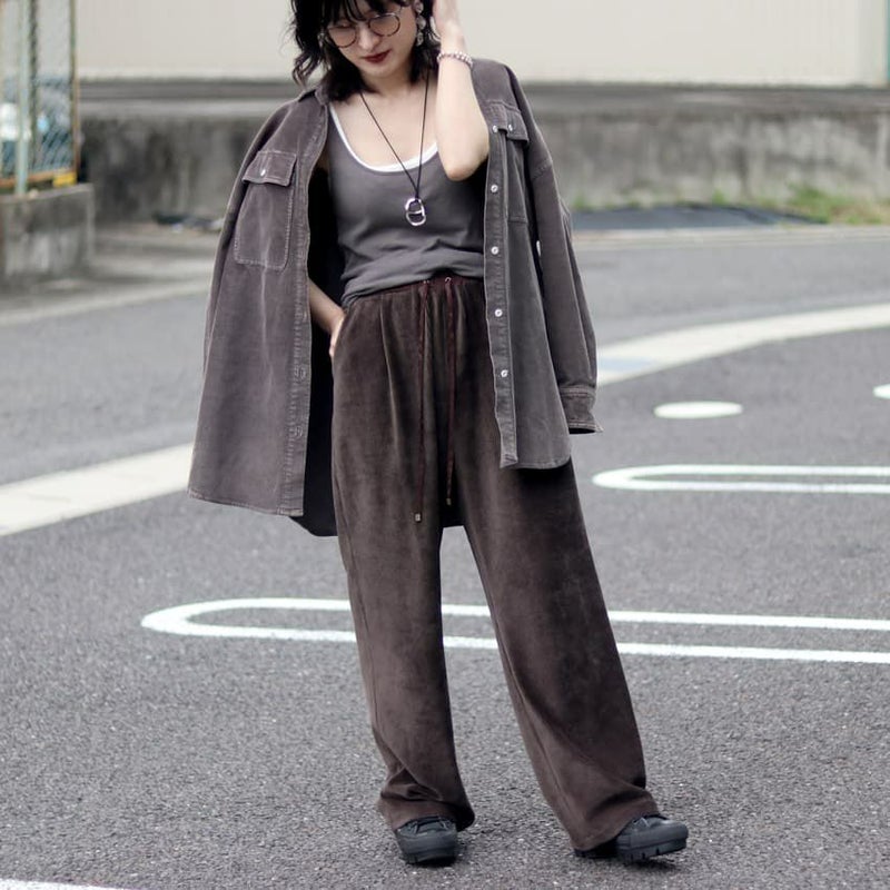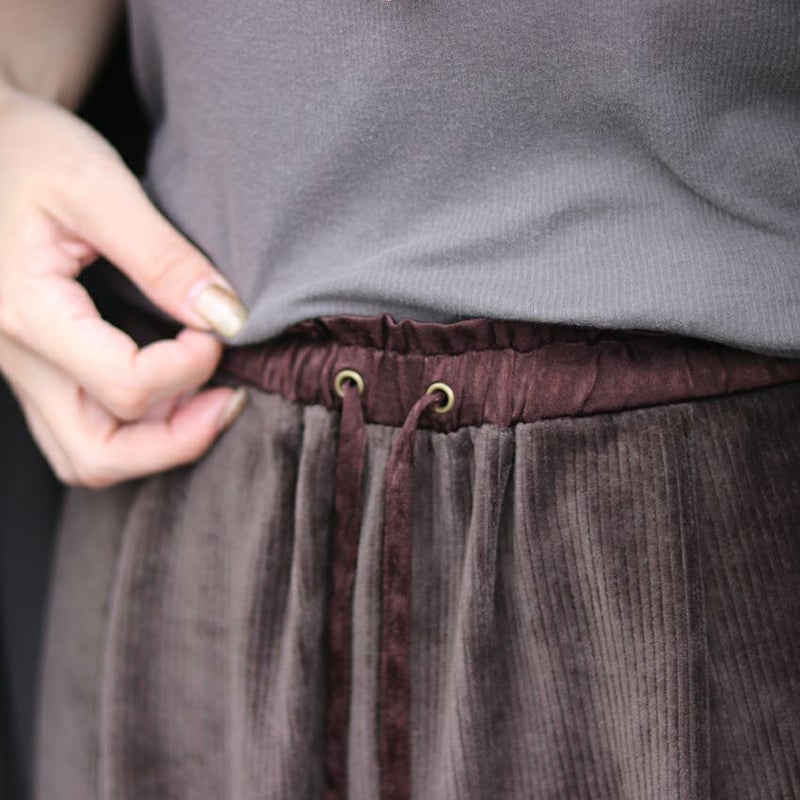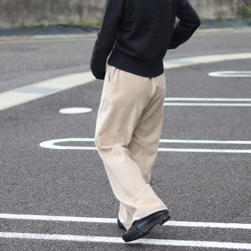 起毛コール素材を使用した、秋冬にぴったりのイージーパンツ。