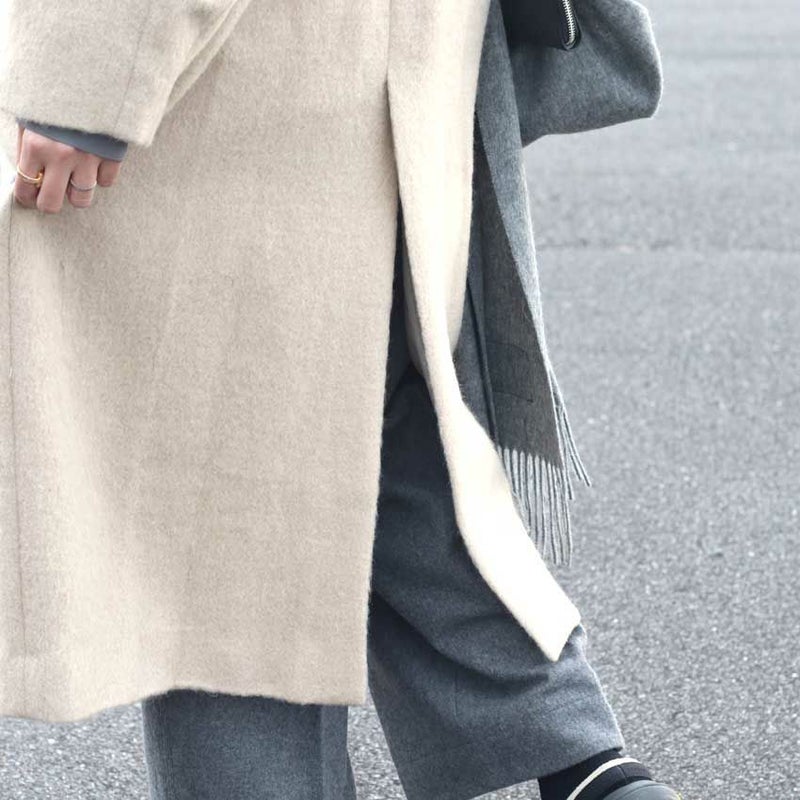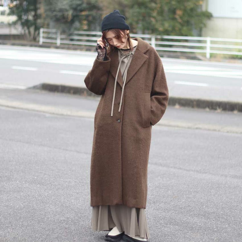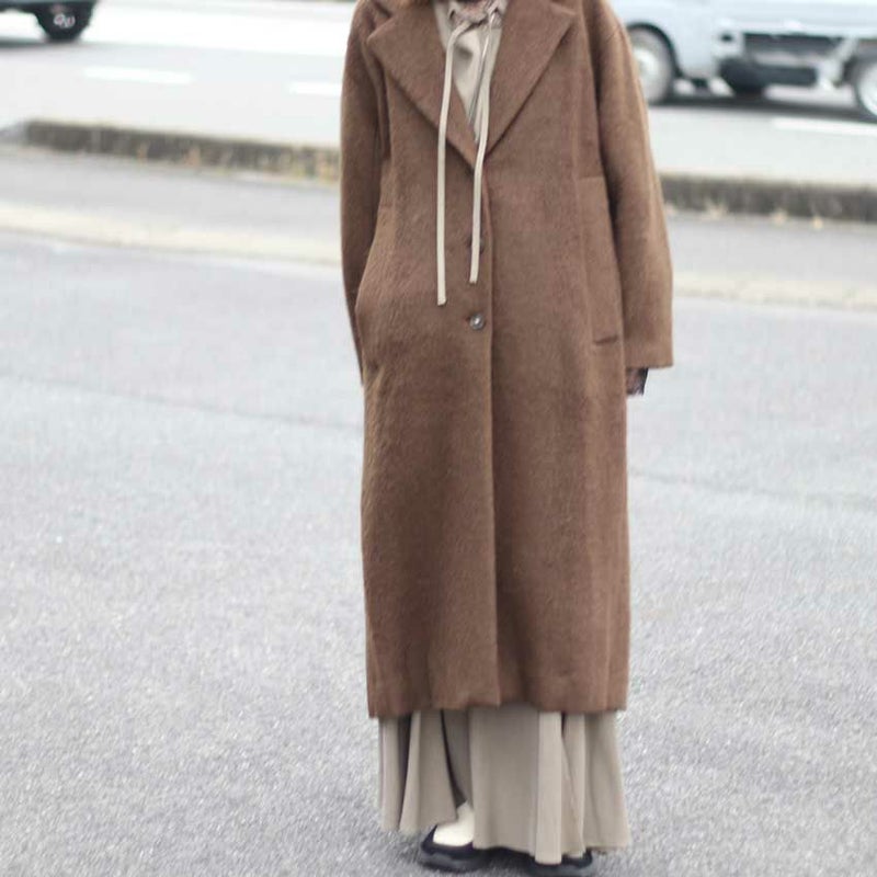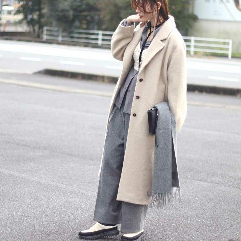 今年最注目のロングコートは、毛足のあるウール混シャギー素材を贅沢に使用した、軽さと暖かさを両立させた一着です。