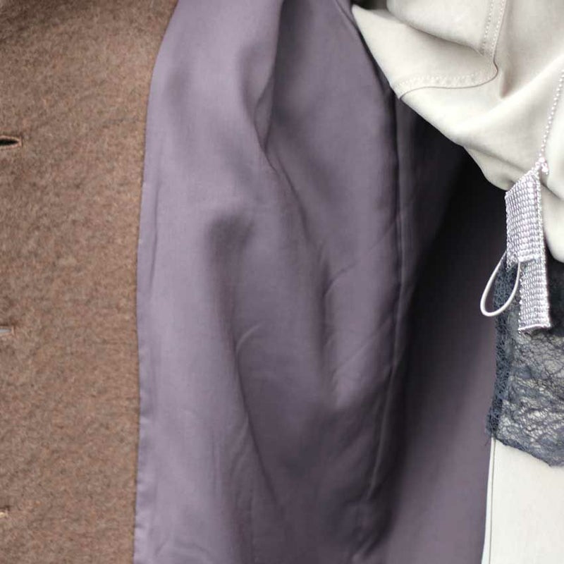 素材:(表地)毛61%、アクリル15%、モヘア14%、ナイロン10%(裏地)ポリエステル68%、複合繊維(ポリエステル)32%