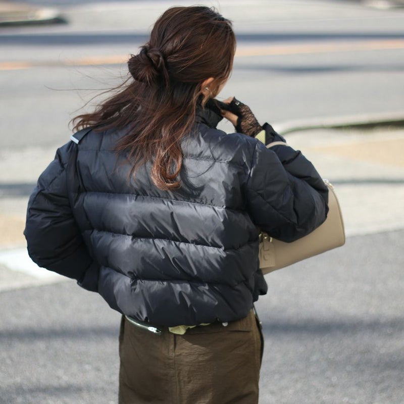中綿には 高品質なダウンフェザー を使用。 驚くほど軽い着心地ながら、しっかりと暖かさをキープし、寒い季節も快適に過ごせます。