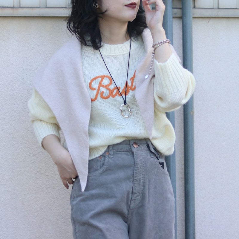 アクセントカラーの刺繍ロゴが、さりげなく存在感を放つ上品なウールニット。