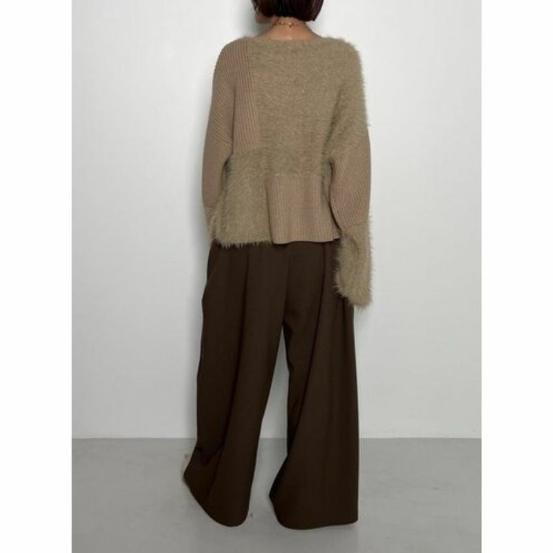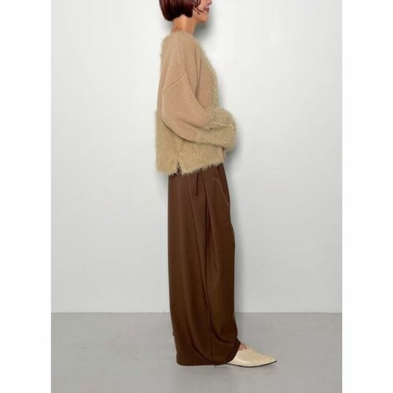 毛足感のある素材でも着膨れして見えないよう、計算された配置とシルエットに。