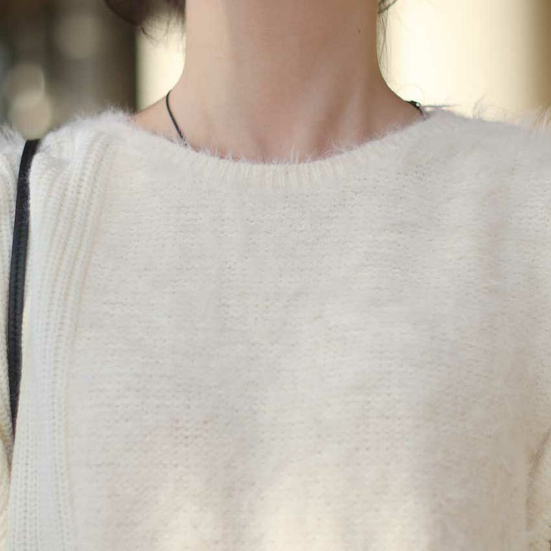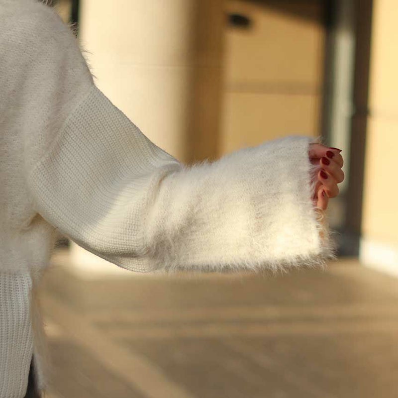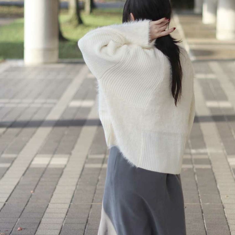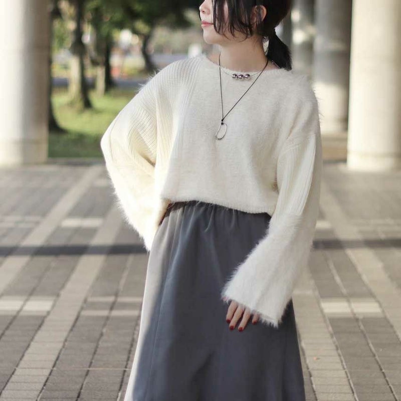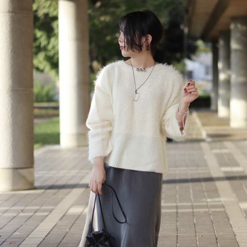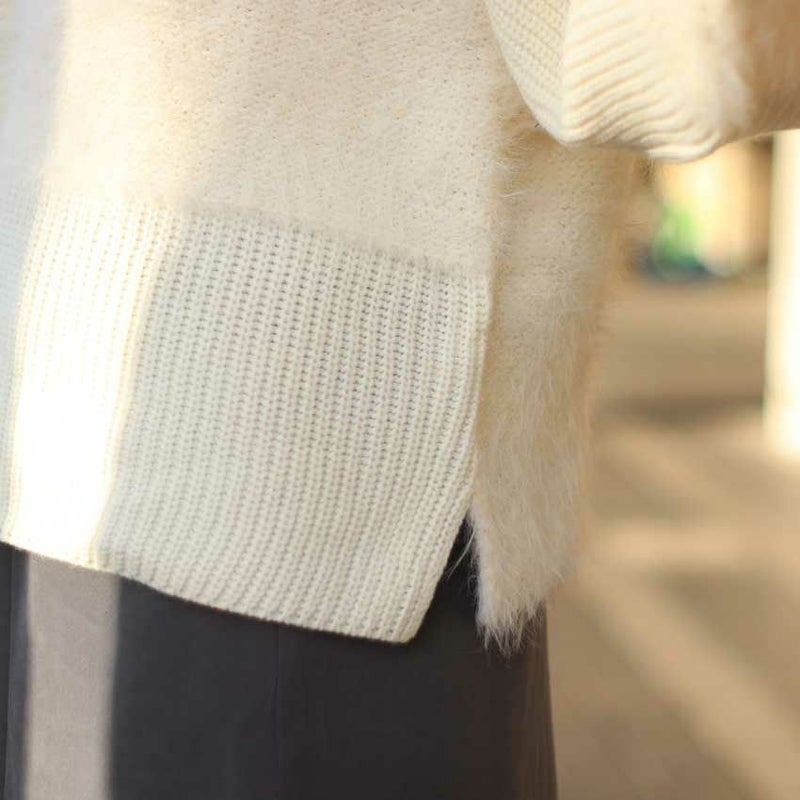 ふんわりとしたシャギーヤーンをMIXすることで、カジュアルさの中に女性らしい華やかさをプラスしました。