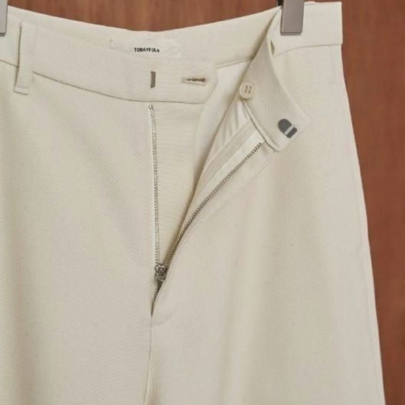 ウール特有の毛羽立ちを抑えた、滑らかで上品な表情の生地を使用したトラウザーズ。