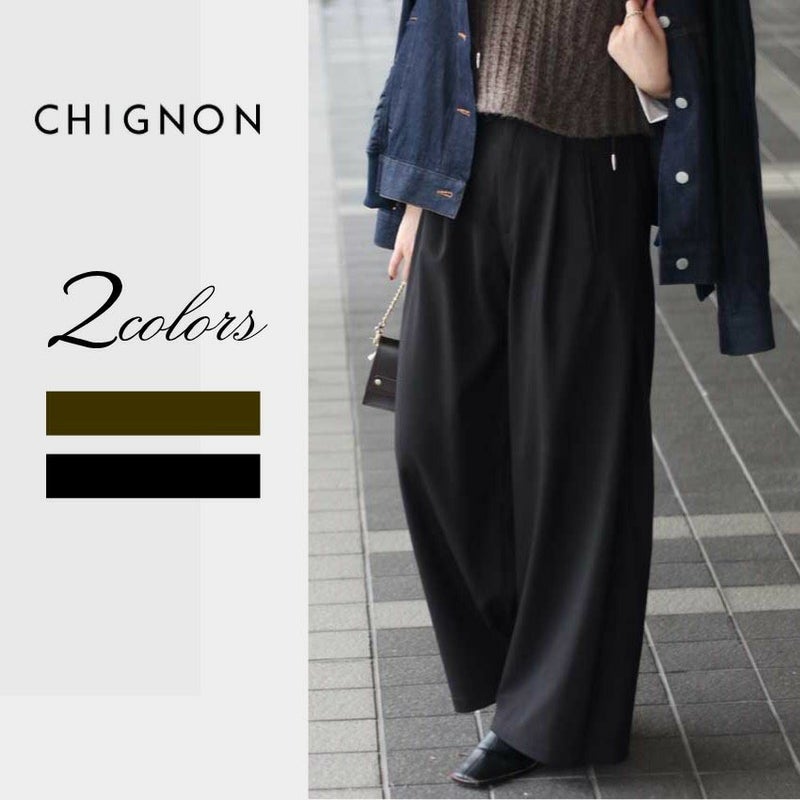 CHIGNON/シニヨン サイドタックワイドPT 3655-237MK ツイル スラックス セットアップ
