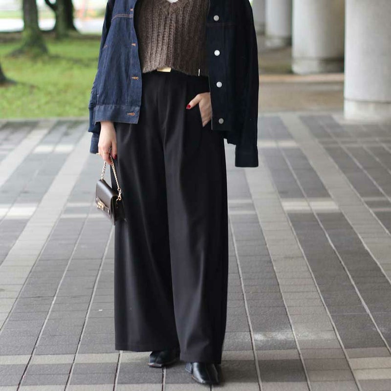 オフィスから休日のお出かけまで幅広く活躍する、ワードローブに加えておきたい万能パンツです。