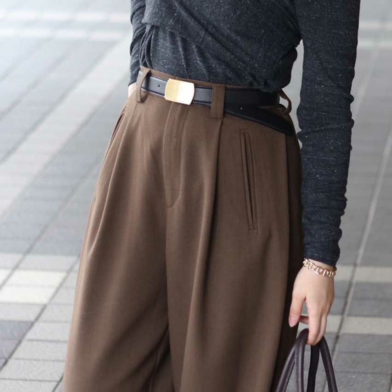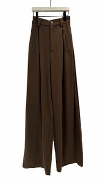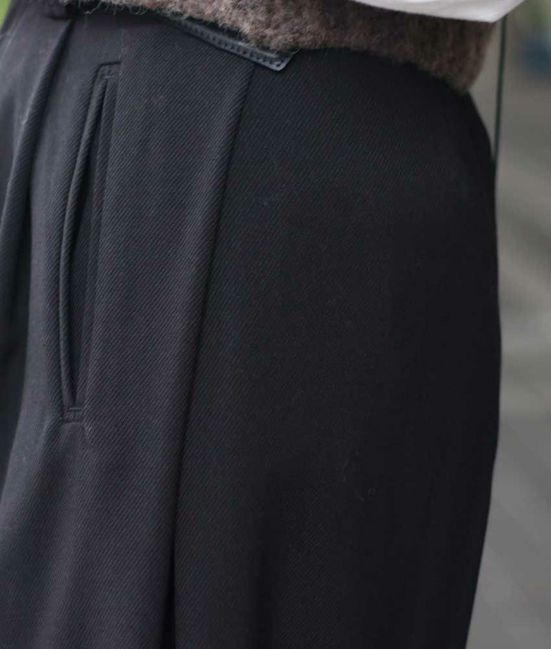 ウォーム感のある上質なツイル素材を贅沢に使用し、サイドにあしらわれたタックが目を引くワイドパンツ。