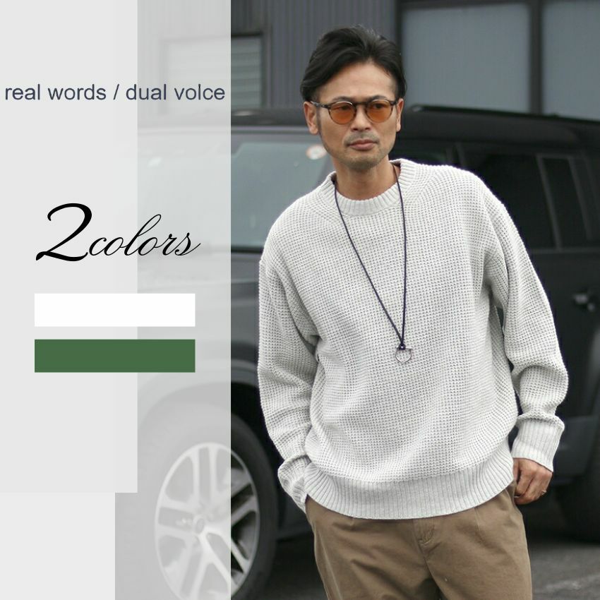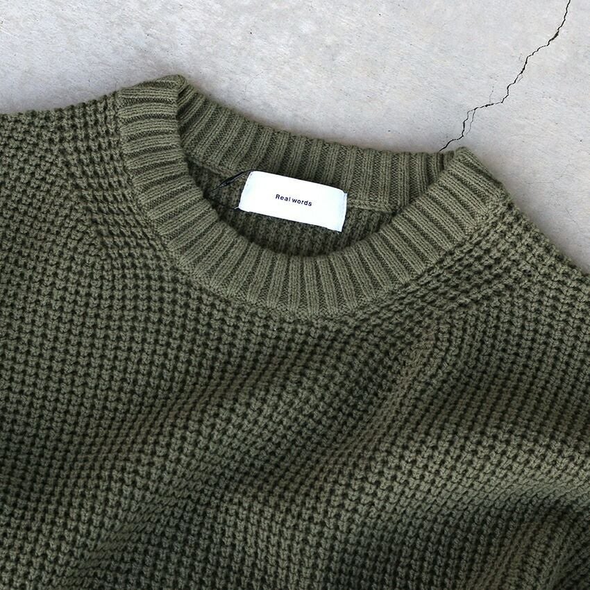 他の画像を見る REAL WORDS リアルワーズ ワッフルニット R25W-K021 プルオーバーニット チクチクしない ミドルゲージ 長袖 シンプル 無地 大人 ブランド LIVE紹介商品 ¥ 13,200 税込 在庫切れ お気に入りに登録する