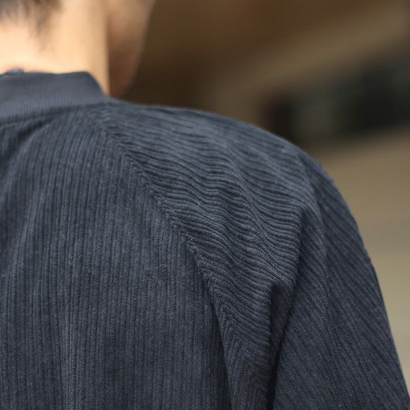 自社開発のECOTECリサイクル糸を使用し、ランダム畝のコーデュロイ素材を採用したカットソー。