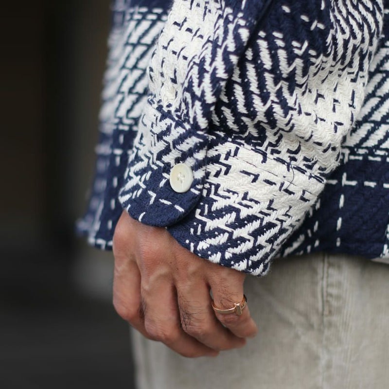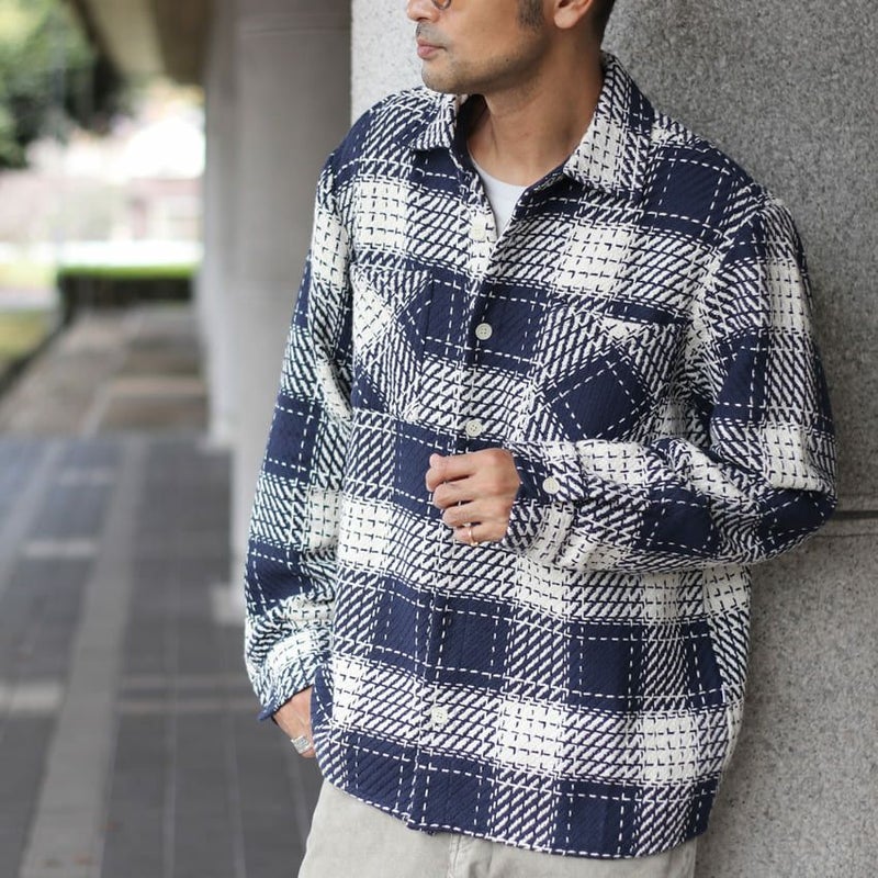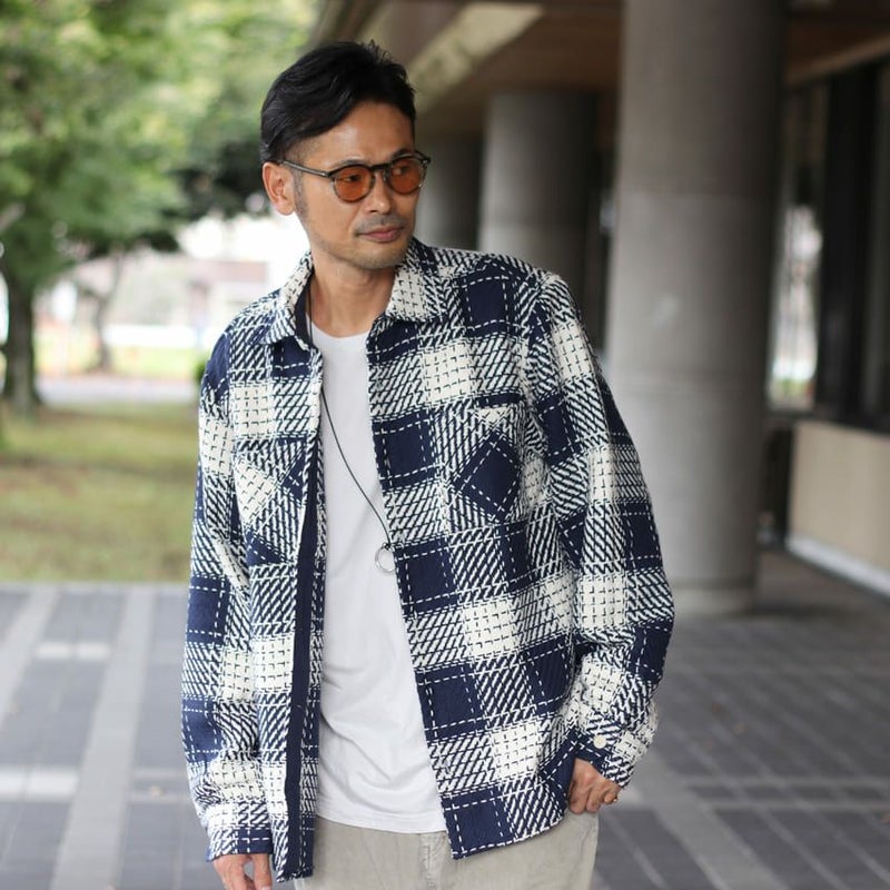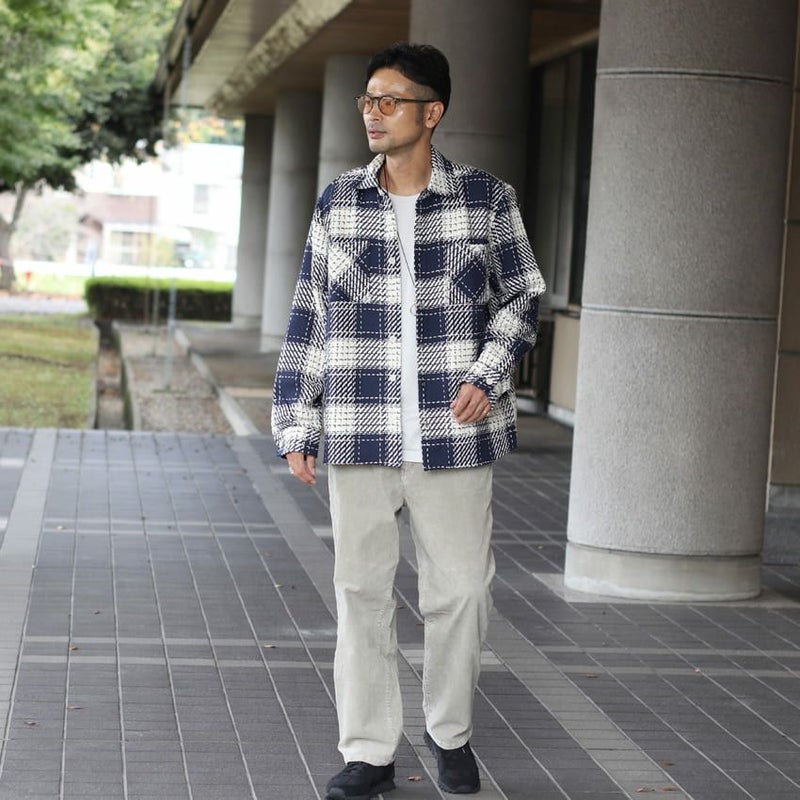 やや厚みがある質感でシャツとしてはもちろんのこと、ライトアウター感覚で着用できるアイテムです。