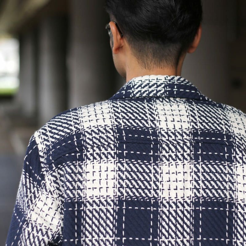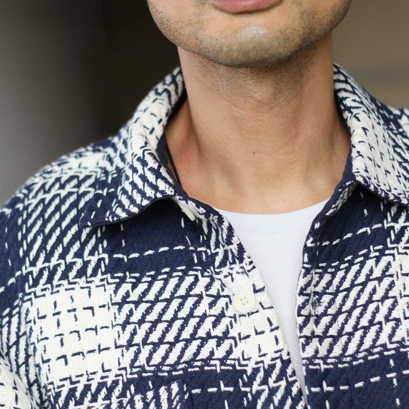 バスケット織と呼ばれる、ざっくりと織られた柔らかい風合いの生地を使用したオーバーシャツ。
