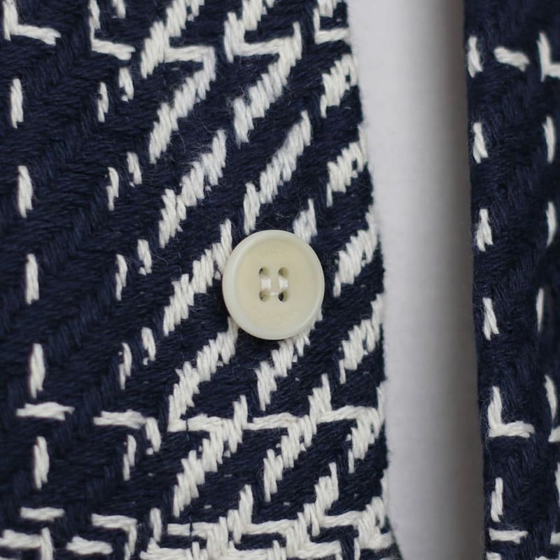 正式名称であるホワイティングオーバーシャツの「ホワイティング」は、創業者の祖父の名前が由来となっており、ブランドオリジナルの刻印が入った、天然の椰子から作られるコロゾボタンを使用しており、細部にまで丁寧な作りとなります。