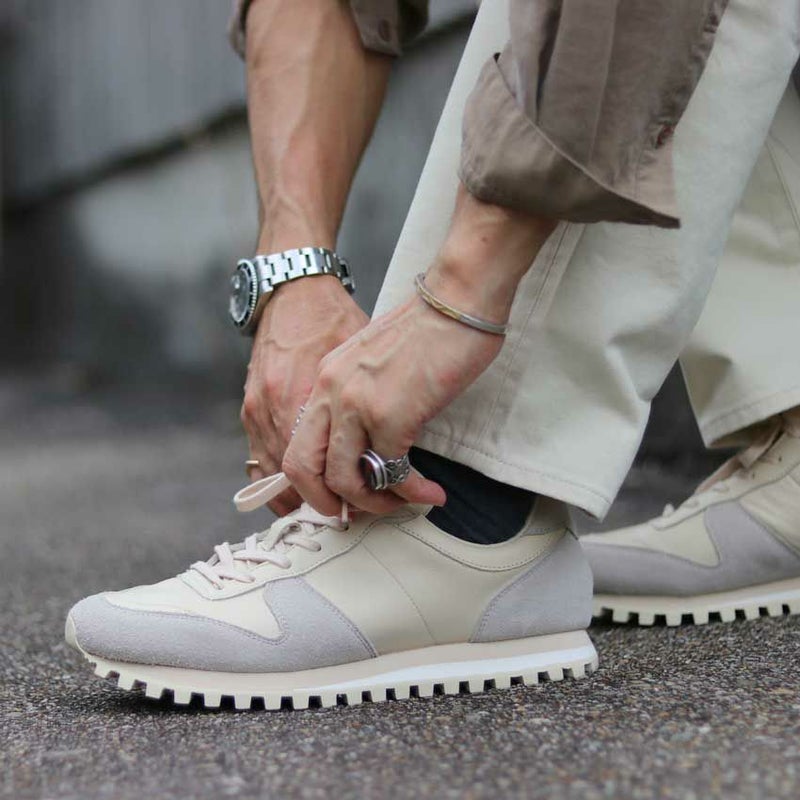 定番のMARATHONに悪路でもグリップが効きやすいTRAIL SOLEを使用。古くから使われていたアウトソールを復刻したモデルです。