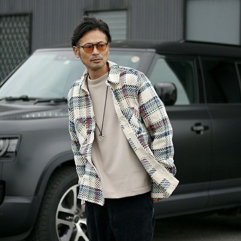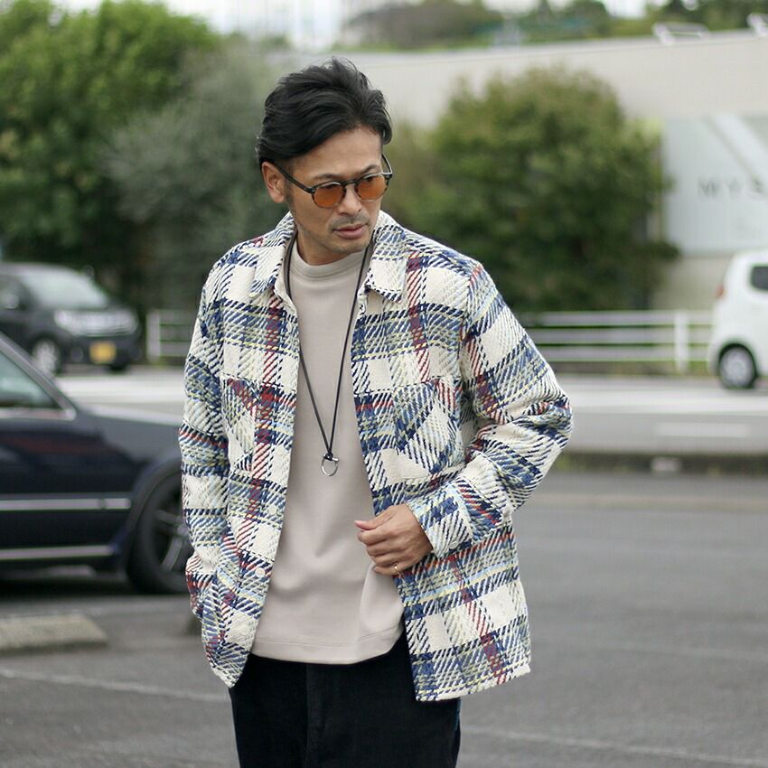 やや厚みがある質感でシャツとしてはもちろんのこと、ライトアウター感覚で着用できるアイテムです。