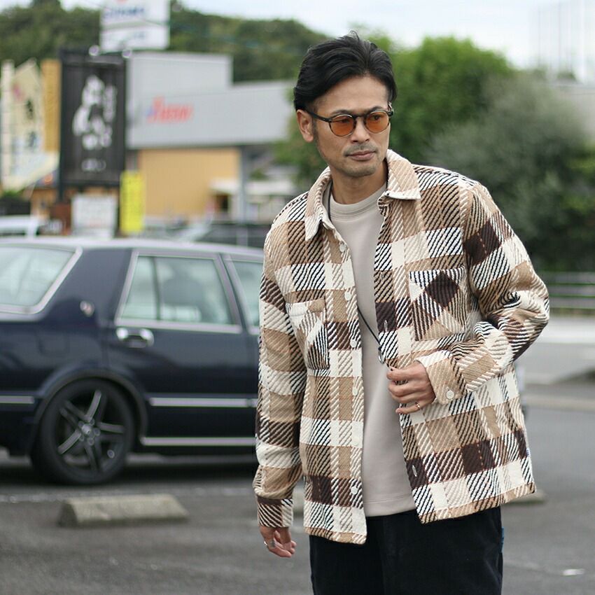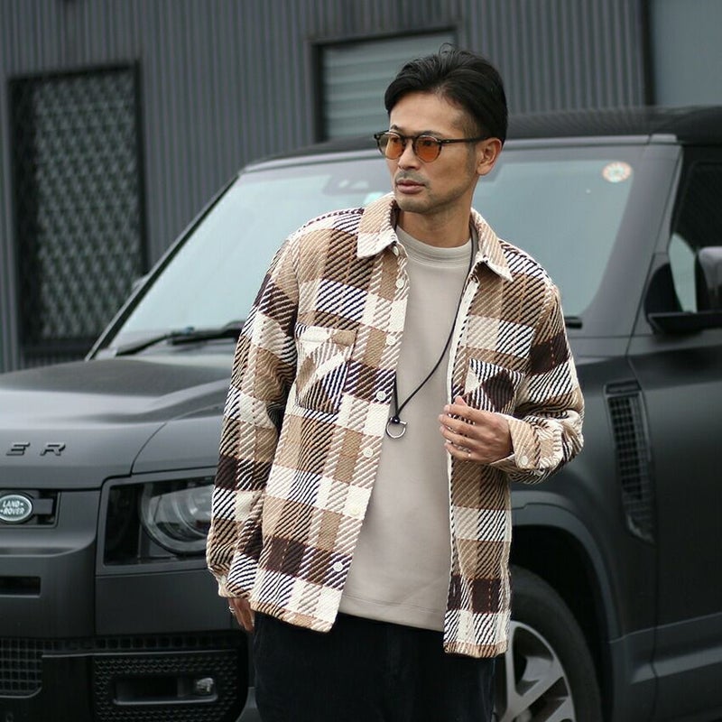 やや厚みがある質感でシャツとしてはもちろんのこと、ライトアウター感覚で着用できるアイテムです。