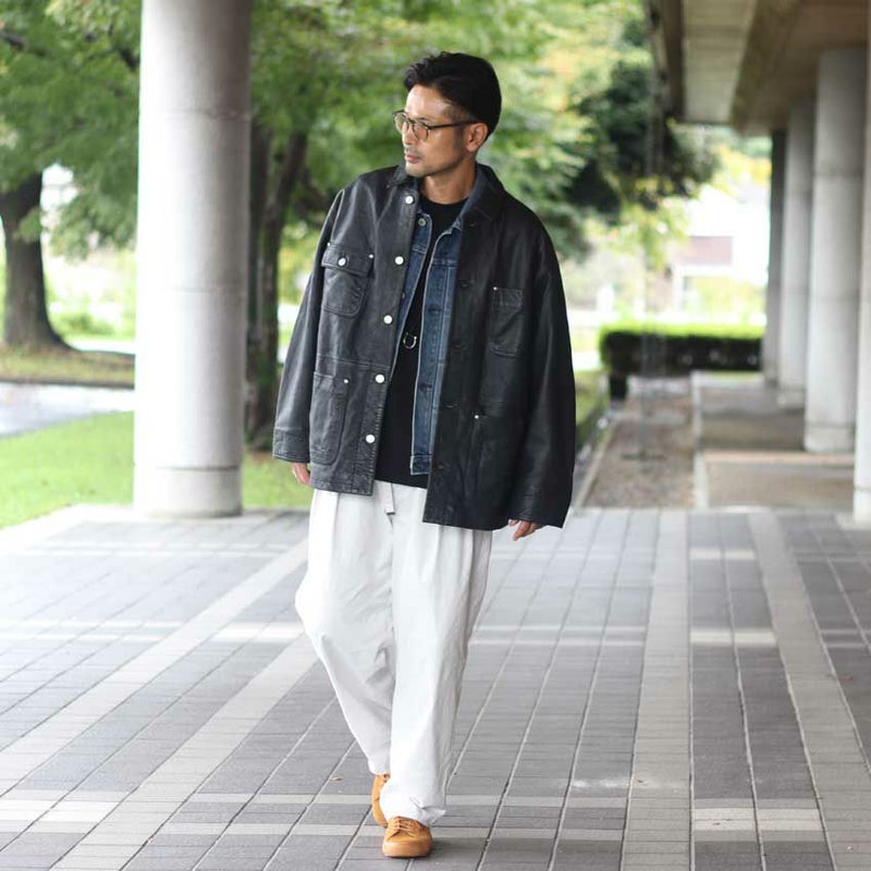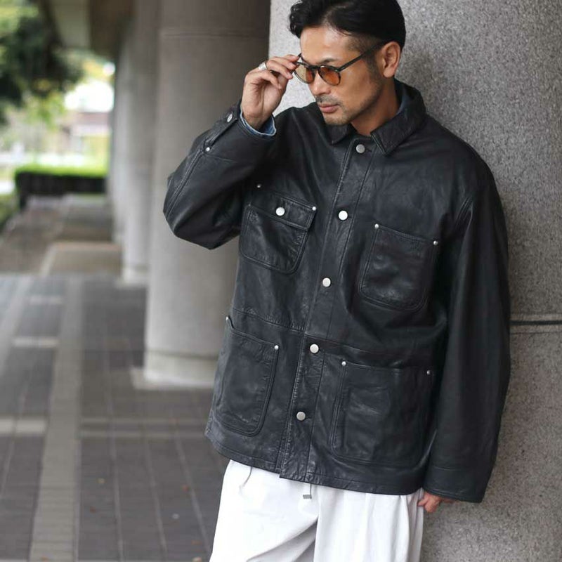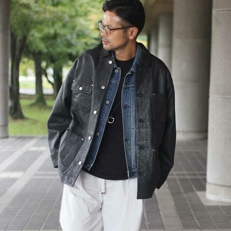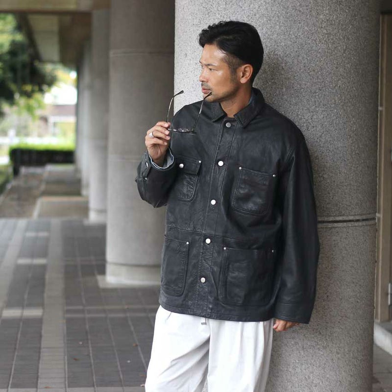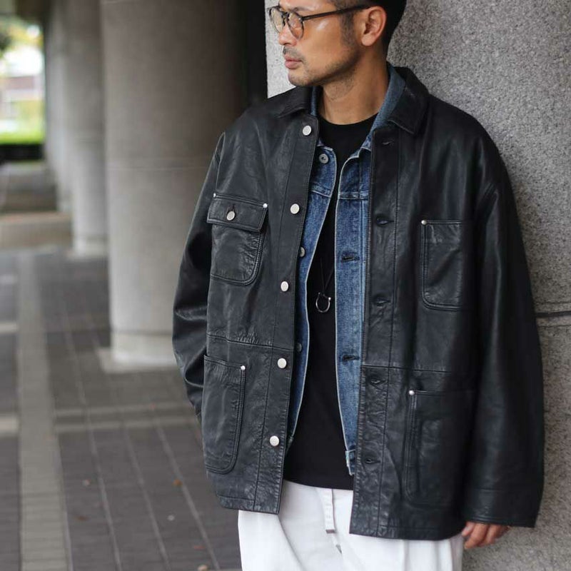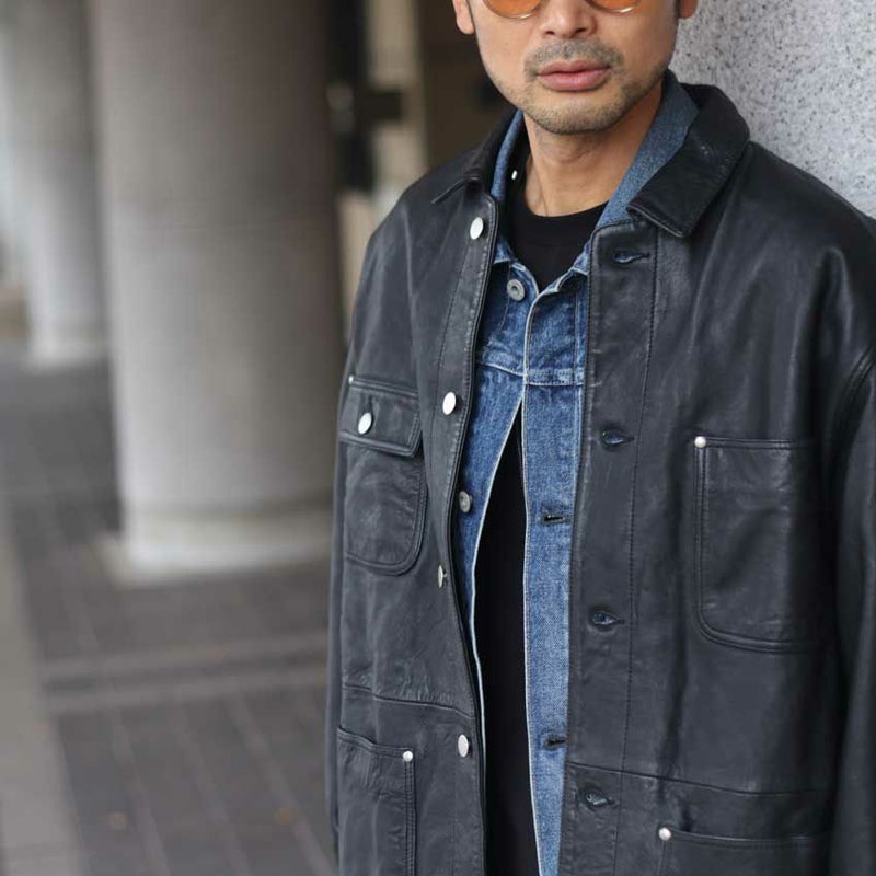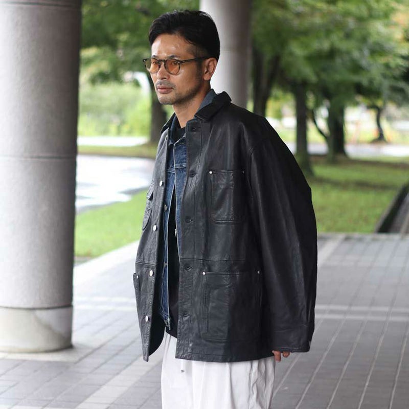 ヴィンテージの空気を纏った、レザーカバーオール。