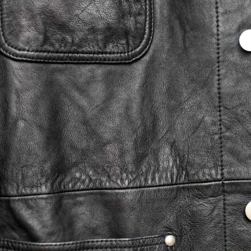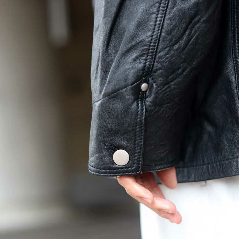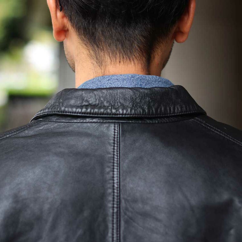 無骨でありながらも洗練された佇まいを持つこのレザーカバーオールは、ディテールの一つひとつにまでこだわり抜かれています。