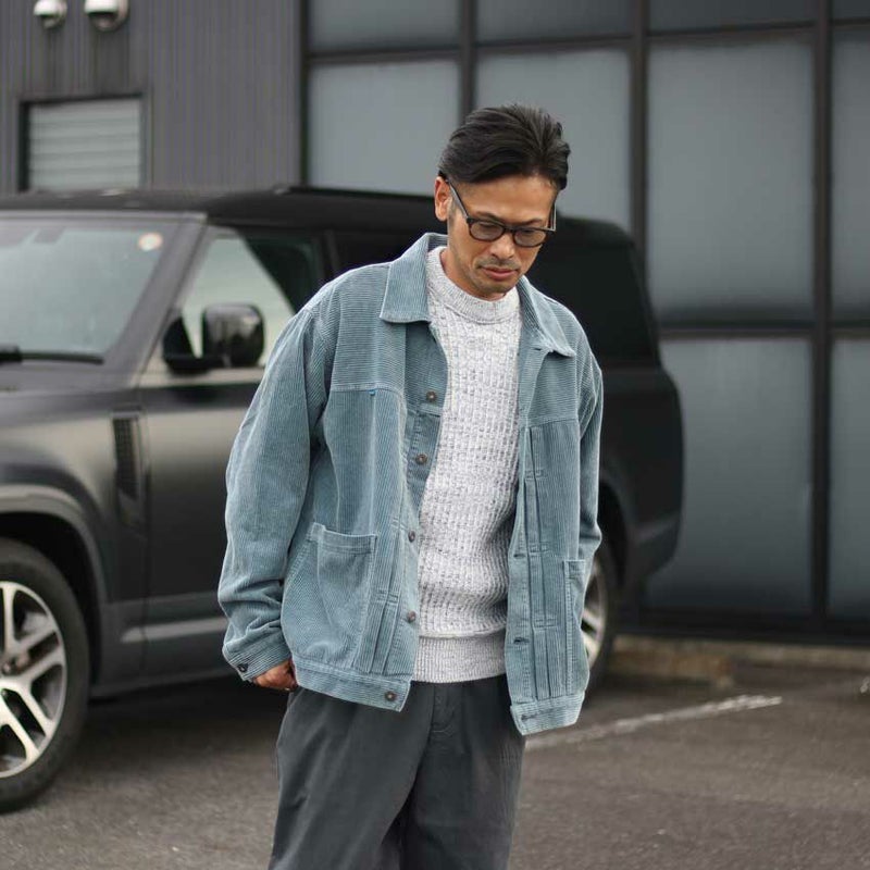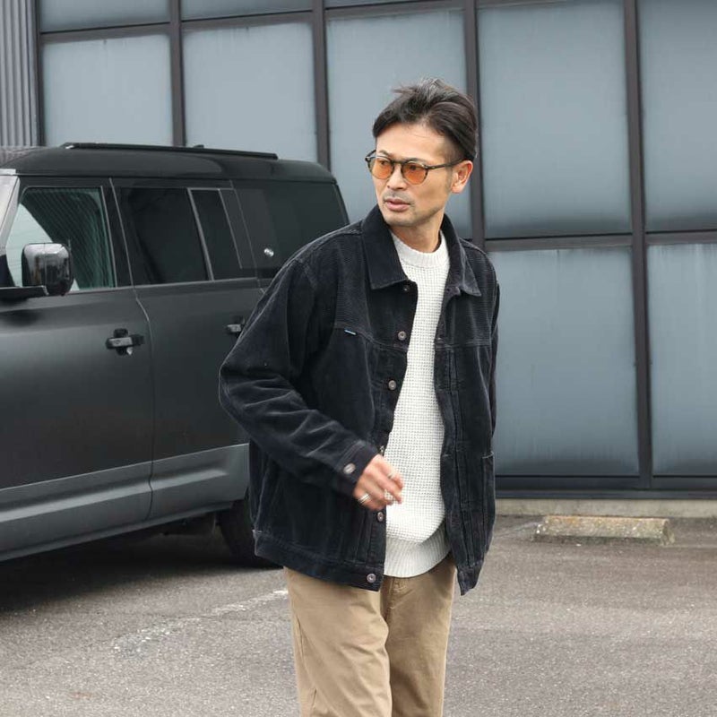 クラシックなトラッカージャケットを、存在感のある8ウェールの肉厚コーデュロイ生地で仕立てました。