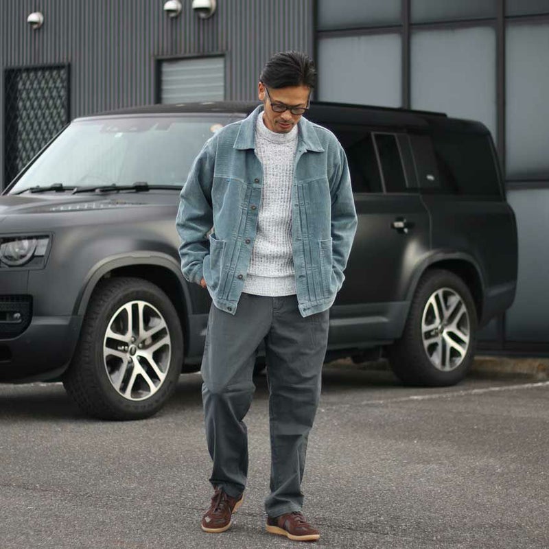 デニムやチノとの相性はもちろん、同素材のパンツとのセットアップスタイルもおすすめです。