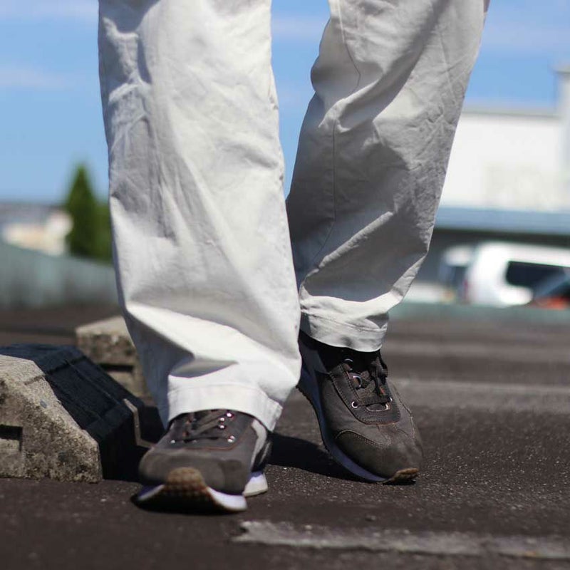 アッパーには、上質なカウスエードとファブリックを採用し、素材感にもこだわりを。