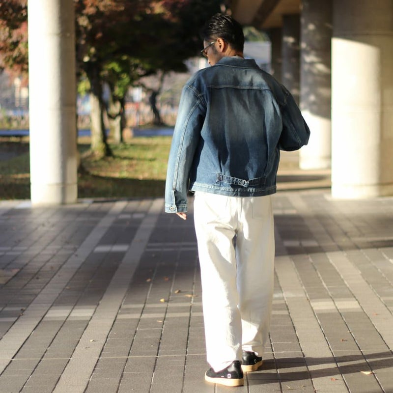 ムラの無いストレート糸を使用し、90年代のジーンズのような色落ちに仕上げています。