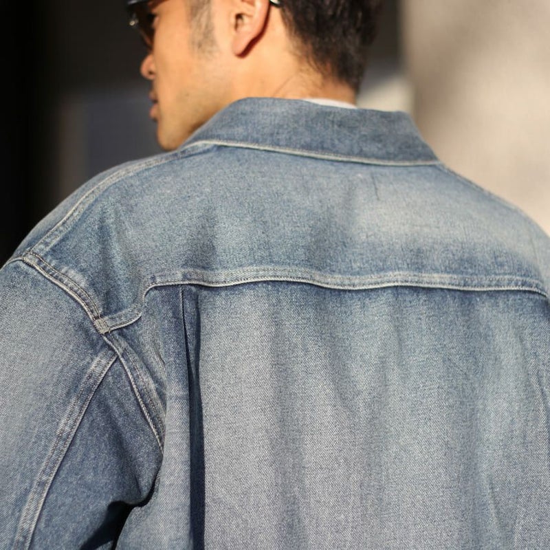 13.5オンスのノンストレッチデニムを使用した、ユニセックスで着られるデニムジャケット。