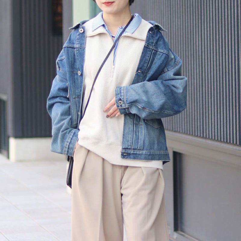 また、ワイドパンツにも合わせやすい、ややコンパクトな丈感もお洒落なポイントです。
