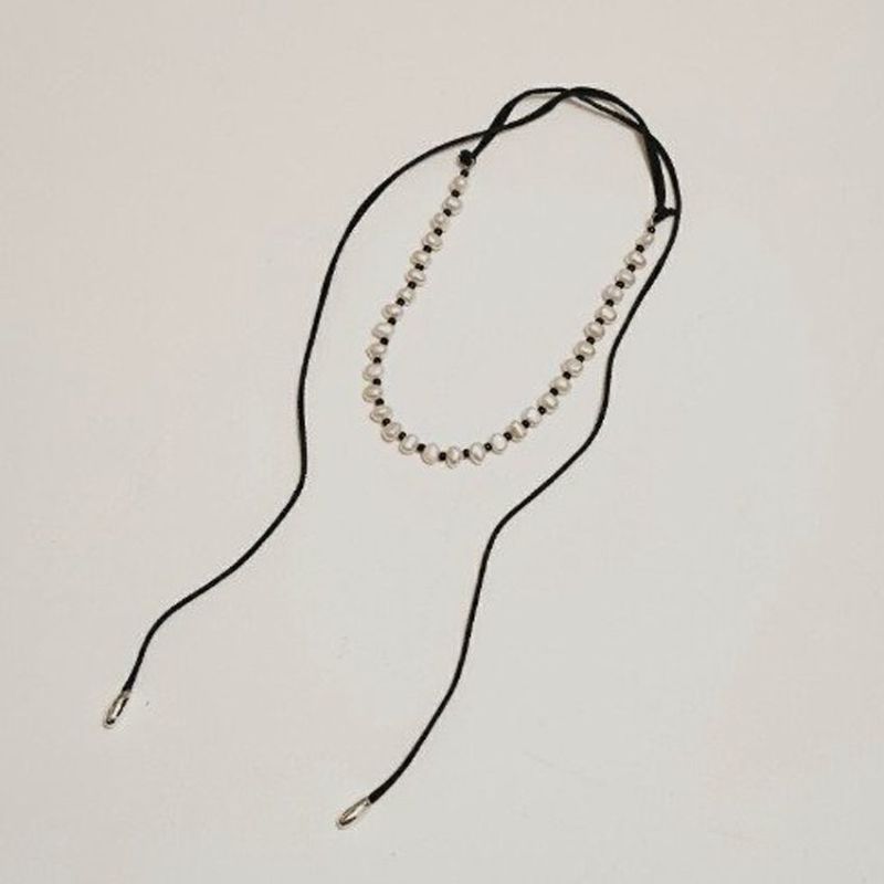 丸いグラックビーズを一つ一つ異なる形の淡水パールと交互に配置させたデザインが魅力です。