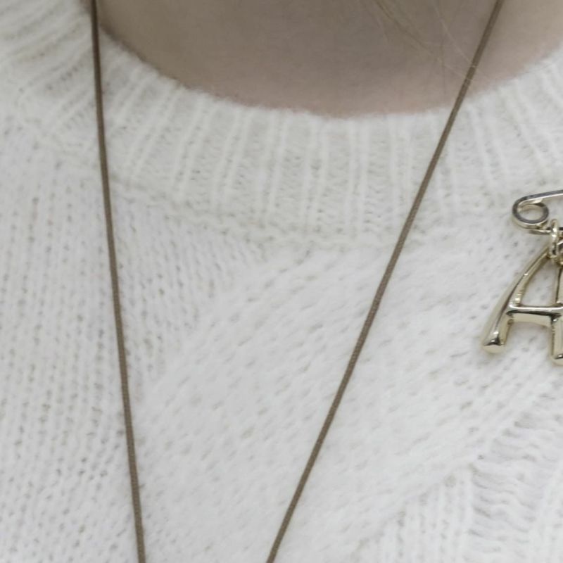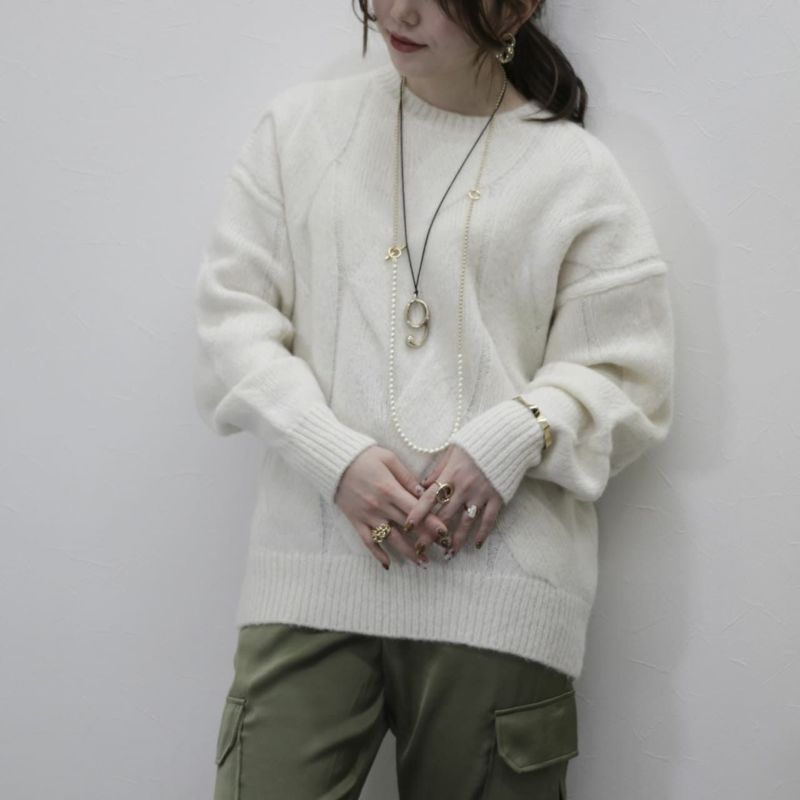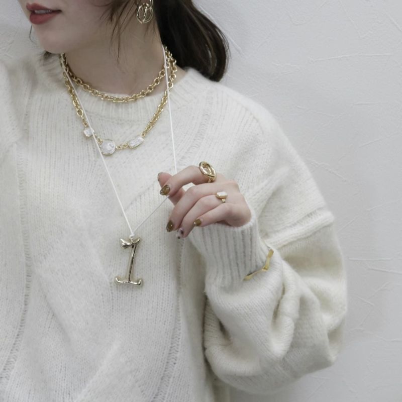 今年らしく、チェーンネックレスなどのごつめのアクセサリーとも好相性です。