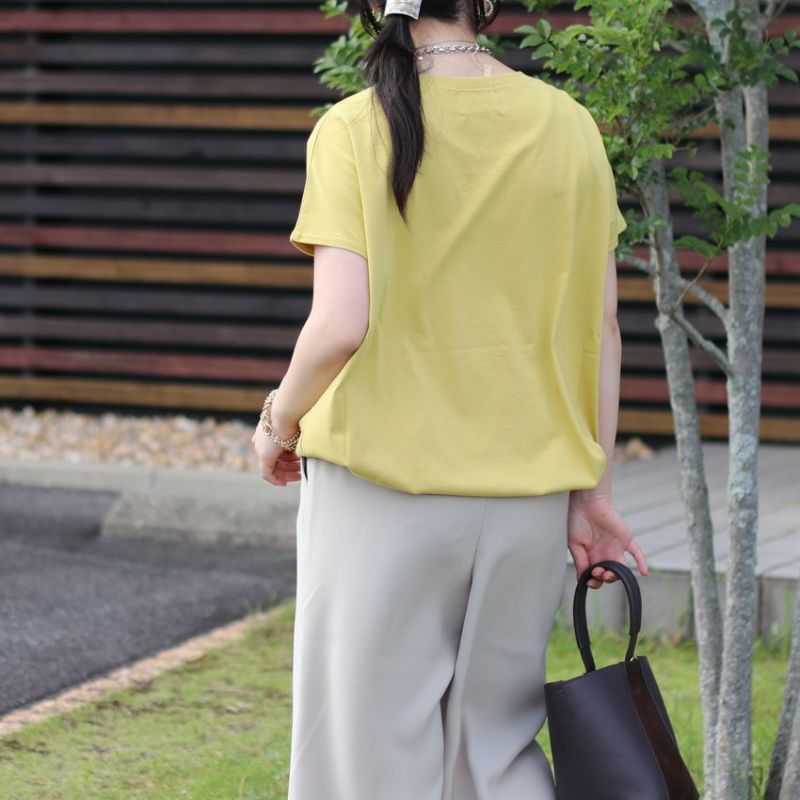 カジュアルコーデにはもちろん、きれいめコーデのハズしアイテムとしても活躍する、ワードローブに1枚は持っておきたい万能Tシャツです。