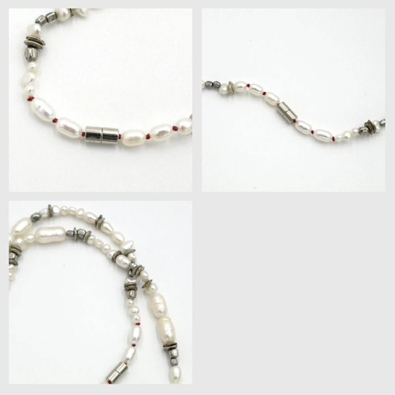 様々な形状の淡水真珠とメタルビーズを組み合わせた56cmロングクレイジーパールネックレス