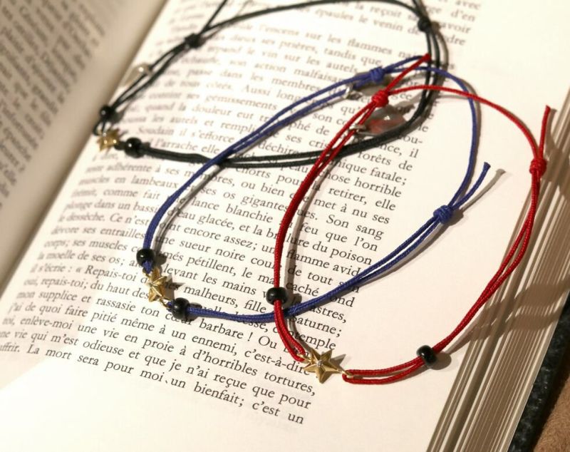 結び目を動かすことでサイズの調節ができるようになっており、ブレスレットとしてもアンクレットとしてもお使い頂けます