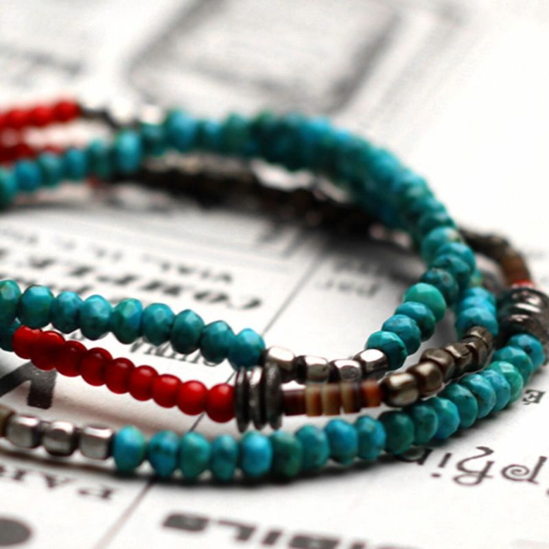 また、ターコイズ、真鍮、シルバーと様々な素材を連ねることでひとつでサマになるよう仕上がっています