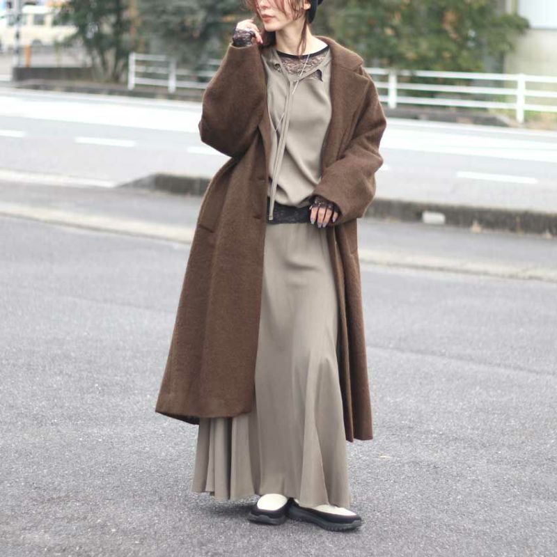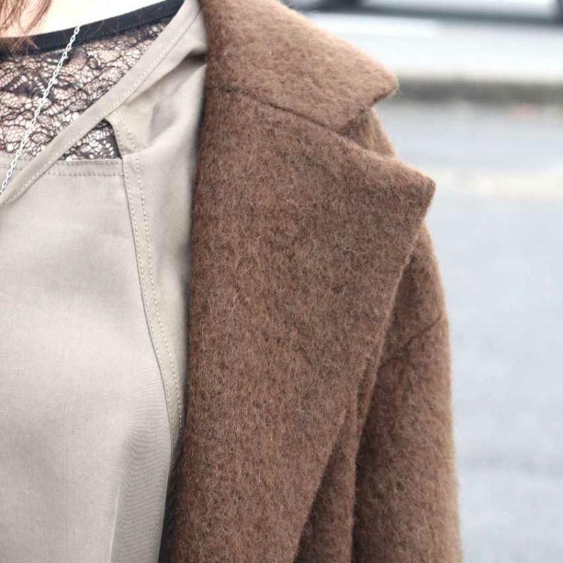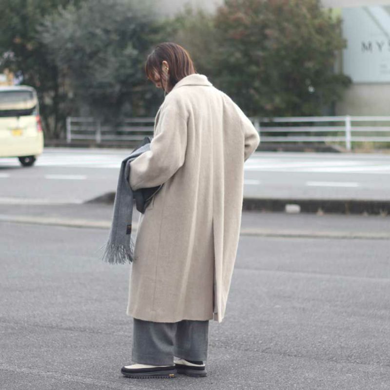 今年最注目のロングコートは、毛足のあるウール混シャギー素材を贅沢に使用した、軽さと暖かさを両立させた一着です。