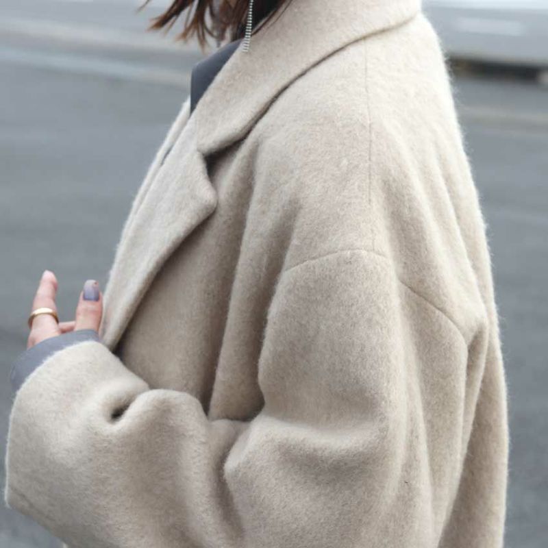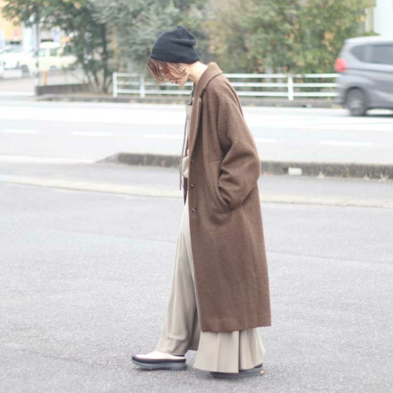 ふんわりとした起毛感が生み出す柔らかな表情は、光の当たり方や動きによってニュアンスが変わり、冬の装いに豊かな奥行きをもたらします。