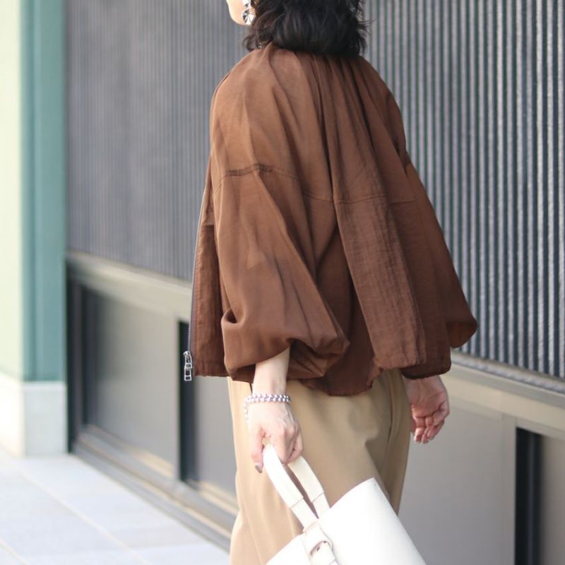 夏から秋へ。こっくりカラーが映える、大人のシアーブルゾン。
