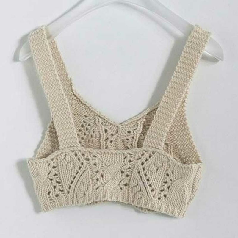 太めの糸でざっくりと編み上げたニットビスチェ。