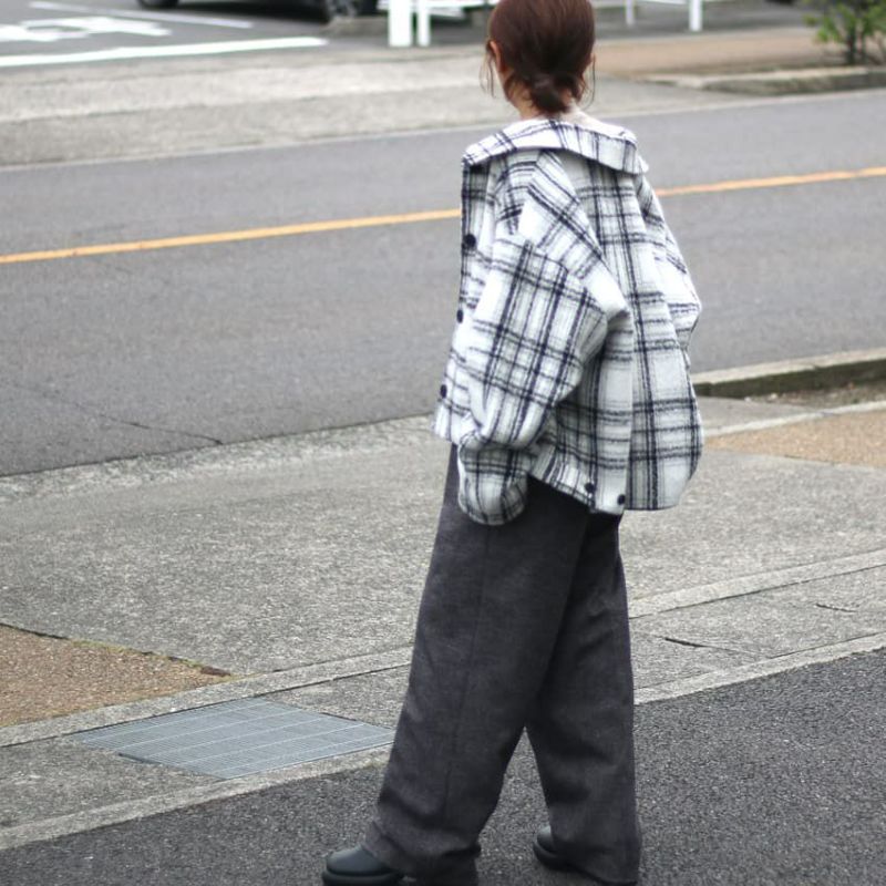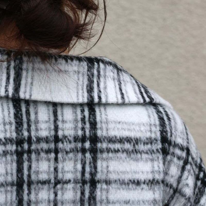 ふんわりとしたシャギー素材と大柄チェックが目を惹く、