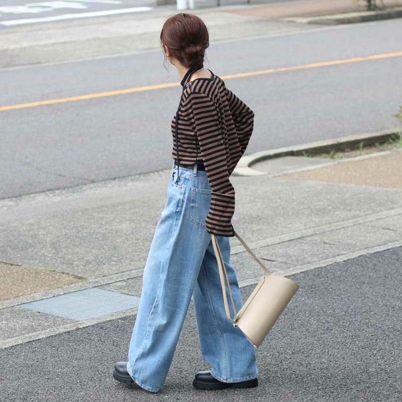 リブ風に見えるシルエットを拾わない編地で、ゆったりとしたサイズ感で作っています。