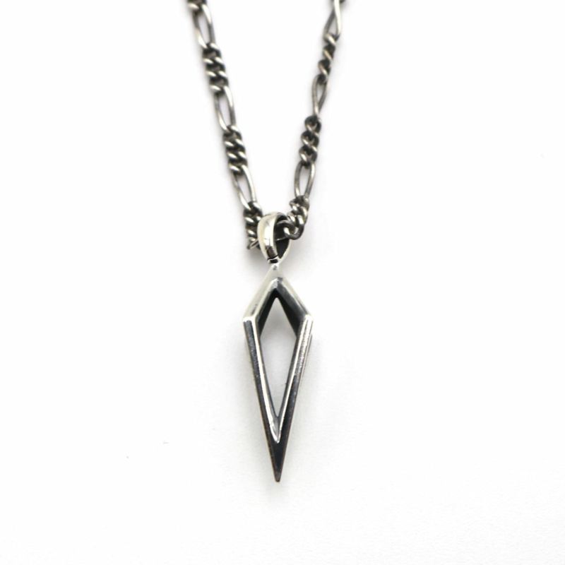 ペンデュラム型のトップがトライアングルワイヤーに施されたネックレス。
