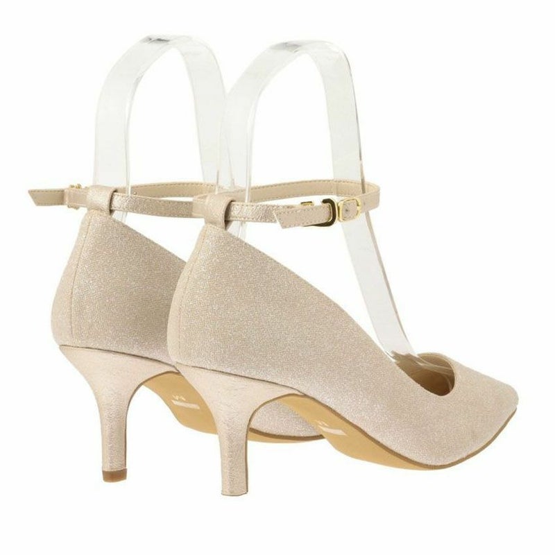 アンクルベルト付きで、歩いている途中に脱げる心配もなく、安定感がある上、見た目もレディな印象に。