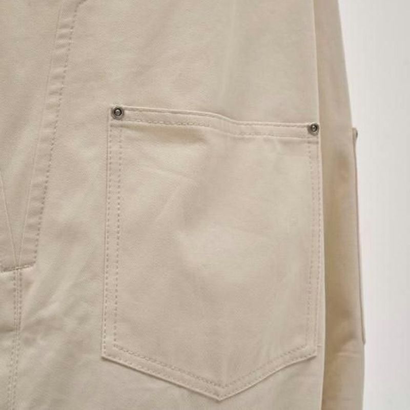リラックス感のあるサイズ感でフロントはジップ仕様、背面には華奢なリベットをあしらったパッチポケット付き。